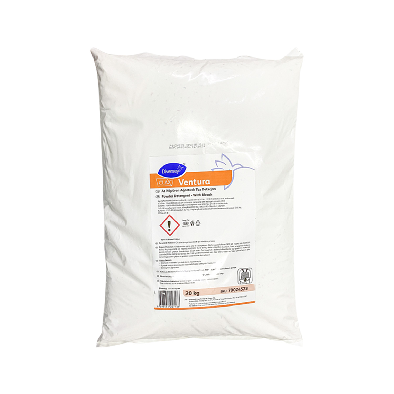 CLAX VENTURA 20 KG, özel olarak geliştirilmiş yüksek konsantrasyonlu yapısıyla, en zorlu kir ve leke problemleri karşısında dahi tavizsiz bir güç sergiler. Profesyonel çamaşırhanelerden otellere, hastanelerden endüstriyel tesislere kadar geniş bir kullanım yelpazesinde, her uygulamada tutarlı ve mükemmel sonuçlar garantiler.